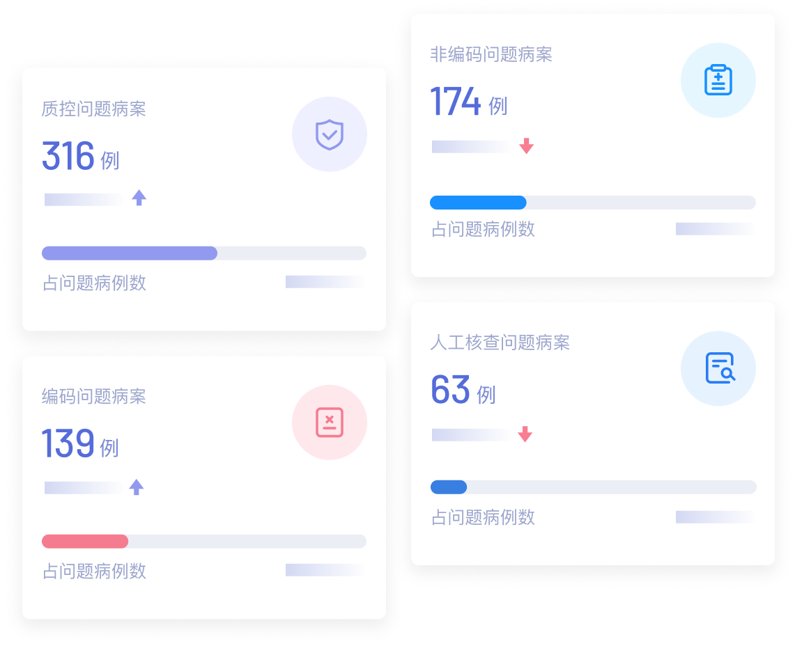 支持医院自定义评分表和评分规则,应用系统进行病历智能评分、评级,多角度持续改进病案首页的填写质量,有效降低病案缺陷